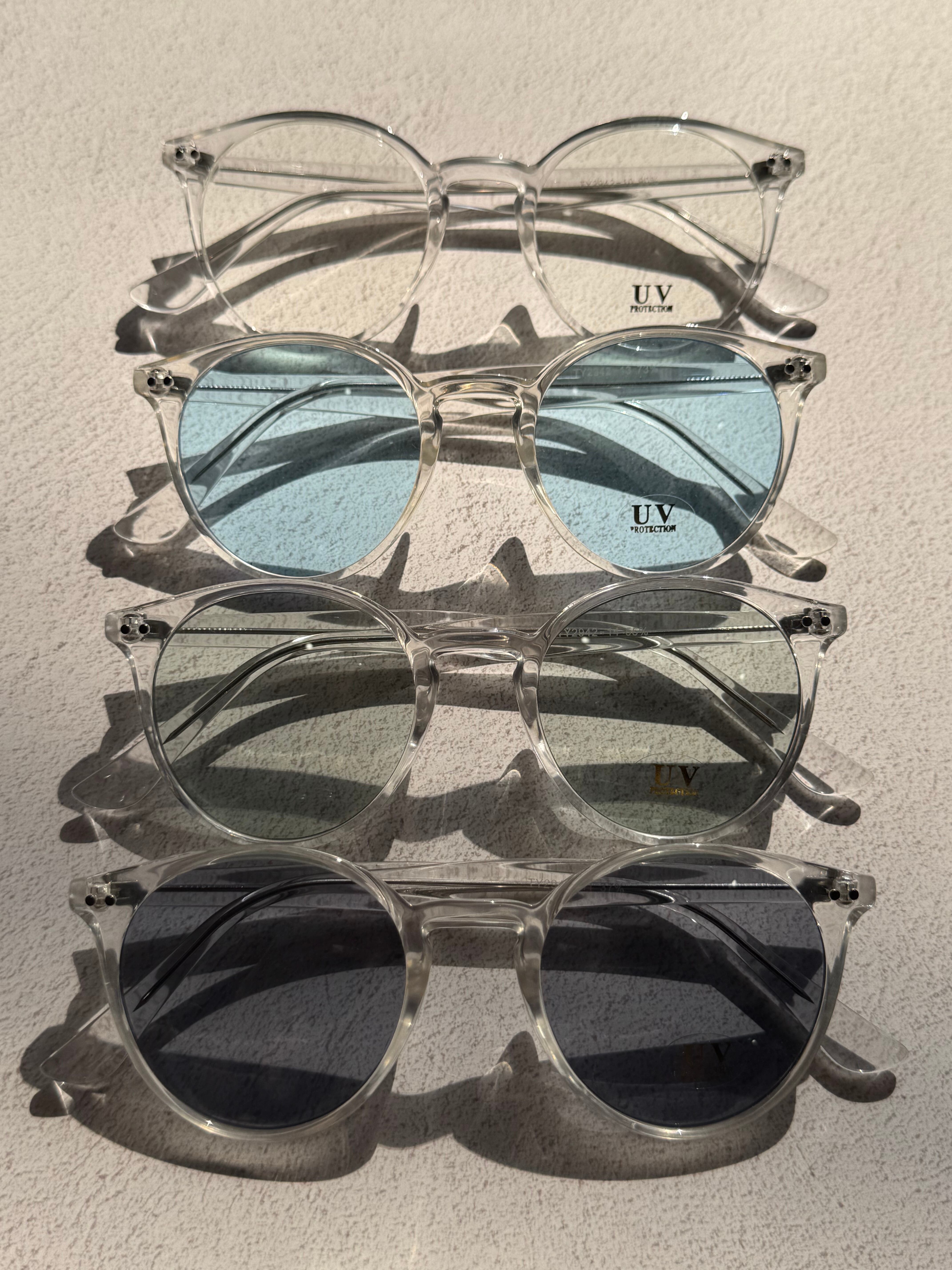 きれいな発色のライトカラーレンズに透明フレーム! 日常のスタイルに抜け感を+できるオススメアイテムです。